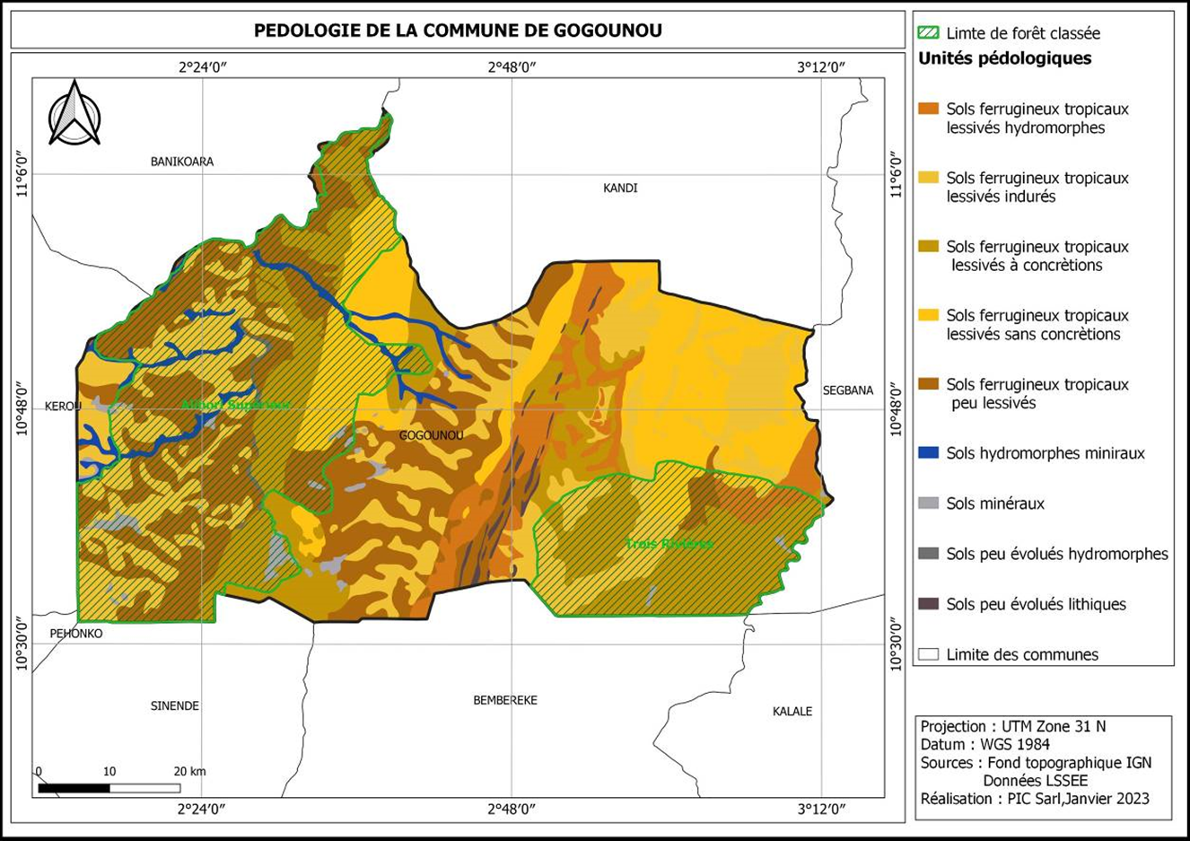 Les sols ferrugineux tropicaux sont les plus répandus (95,36 %). Ces sols à forte potentialité agricole sont sensibles à l’érosion.