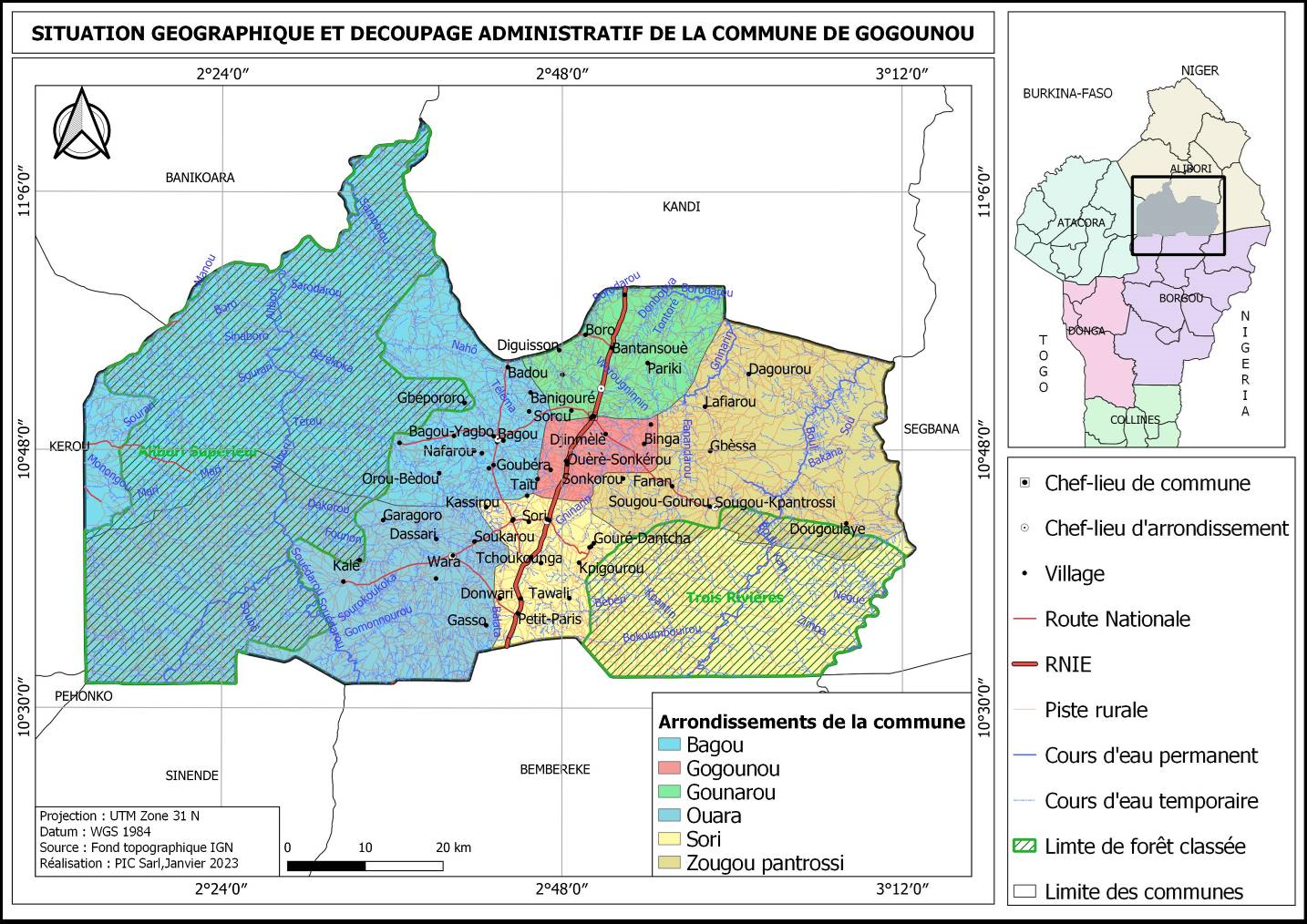 Carte 1 :Situation géographique de la Commune de Gogounou